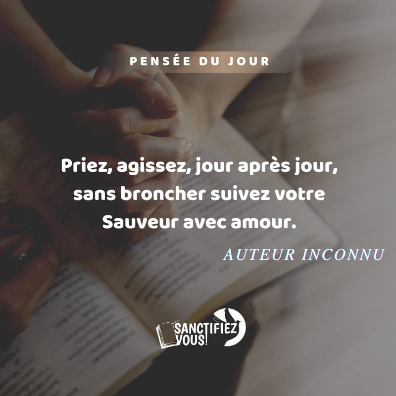 Priez, agissez, jour aprĂšs jour, sans broncher suivez votre Sauveur avec amour. Auteur inconnu