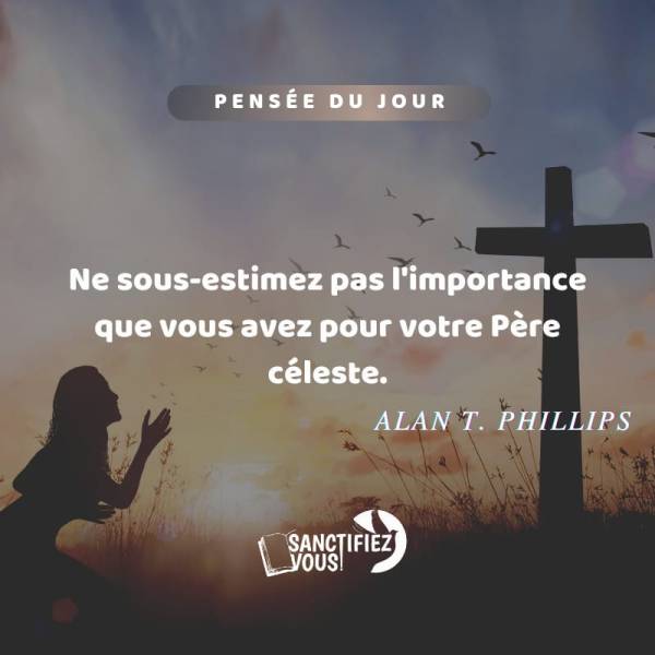 Ne sous-estimez pas l'importance que vous avez pour votre Père céleste. Alan T. Phillips Panse pou jounen an 🧠Pa janm minimize enpòtans ke nou genyen pou Papa nou ki nan syèl la. Alan T. Phillips Pour recevoir quotidiennement les messages de SANCTIFIEZ-VOUS, suivez notre chaîne Whatsapp via ce lien : https://whatsapp.com/channel/0029VaDA6tCAO7RHYUrDS428