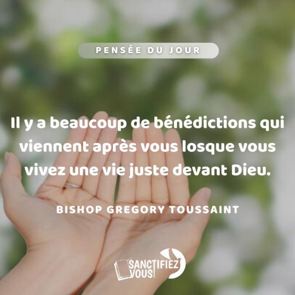 Il y a beaucoup de bénédictions qui viennent après vous losque vous vivez une vie juste devant Dieu. Bishop Gregory TOUSSAINT Panse pou jounen an 🧠Gen anpil benediksyon kap mache dèyè w, lè w mennen yon vi ki dwat devan BonDye. Bishop Gregory TOUSSAINT Pour recevoir quotidiennement les messages de SANCTIFIEZ-VOUS, suivez notre chaîne Whatsapp... Lire la Suite →