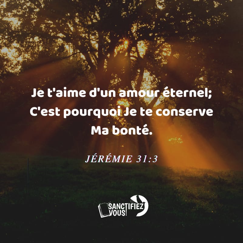 Je t’aime d’un amour Ă©ternel; C’est pourquoi Je te conserve Ma bontĂ©. JĂ©rĂ©mie 31:3