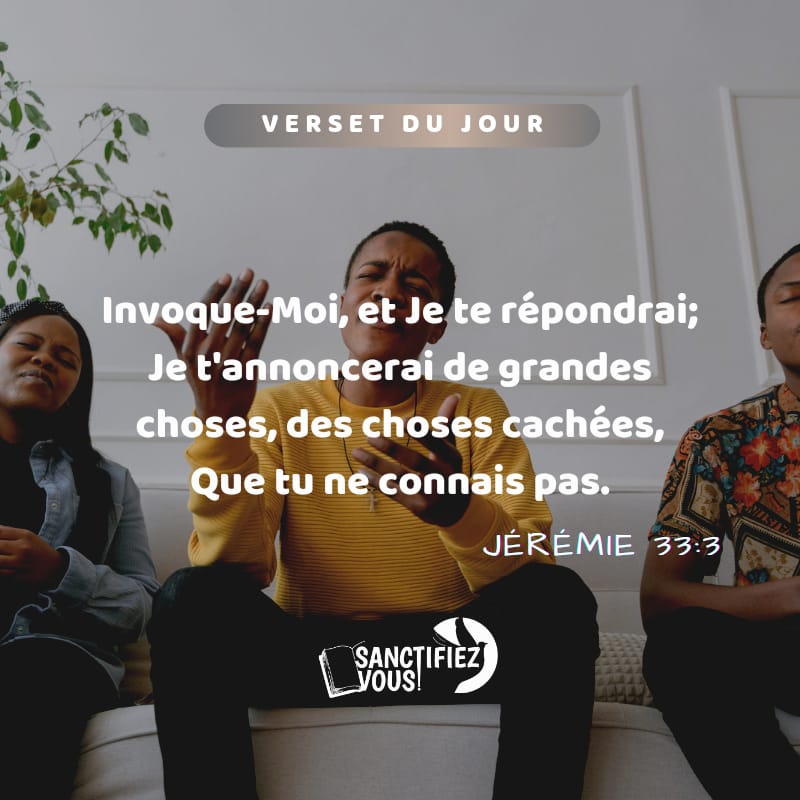 Invoque-Moi, et Je te rĂ©pondrai; Je t’annoncerai de grandes choses, des choses cachĂ©es, que tu ne connais pas. JĂ©rĂ©mie 33:3