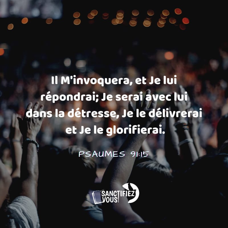 Il M’invoquera, et Je lui répondrai; Je serai avec lui dans la détresse, Je le délivrerai et Je le glorifierai. Psaumes 91:15