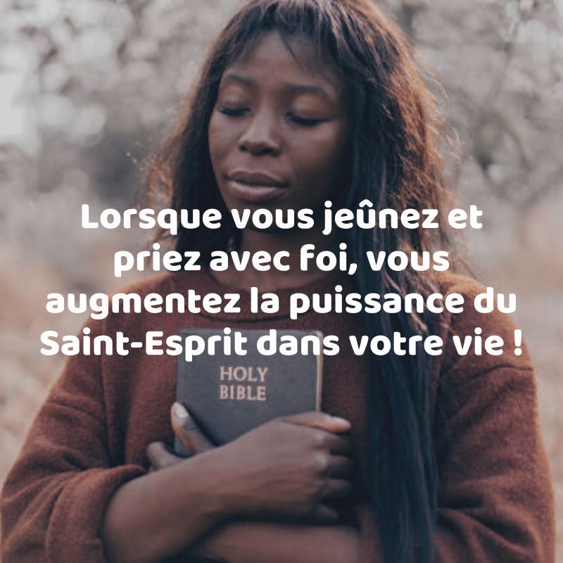 Conseils : Intégrer le jeûne et la prière dans votre vie afin d’être continuellement couvert de la puissance du Saint Esprit pour impacter ce monde et remporter la victoire dans vos luttes quotidiennes.