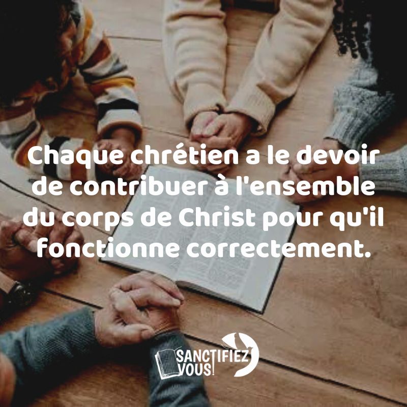 À retenir : L’Église étant le corps de Christ, chaque membre a un rôle à jouer pour le bien être de ce corps. C’est la responsabilité de chaque croyant de rester connecter les uns aux autres afin de bien accomplir la mission pour laquelle L’Église a été fondée.