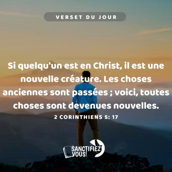 Si quelqu'un est en Christ, il est une nouvelle créature. Les choses anciennes sont passées ; voici, toutes choses sont devenues nouvelles. 2 Corinthiens 5:17 Vèsè jounen an 📖Si yon moun ap viv nan Kris la, li vin yon lòt moun. Bagay lontan yo disparèt, se lòt bagay nèf ki pran plas yo koulye a.... Lire la Suite →
