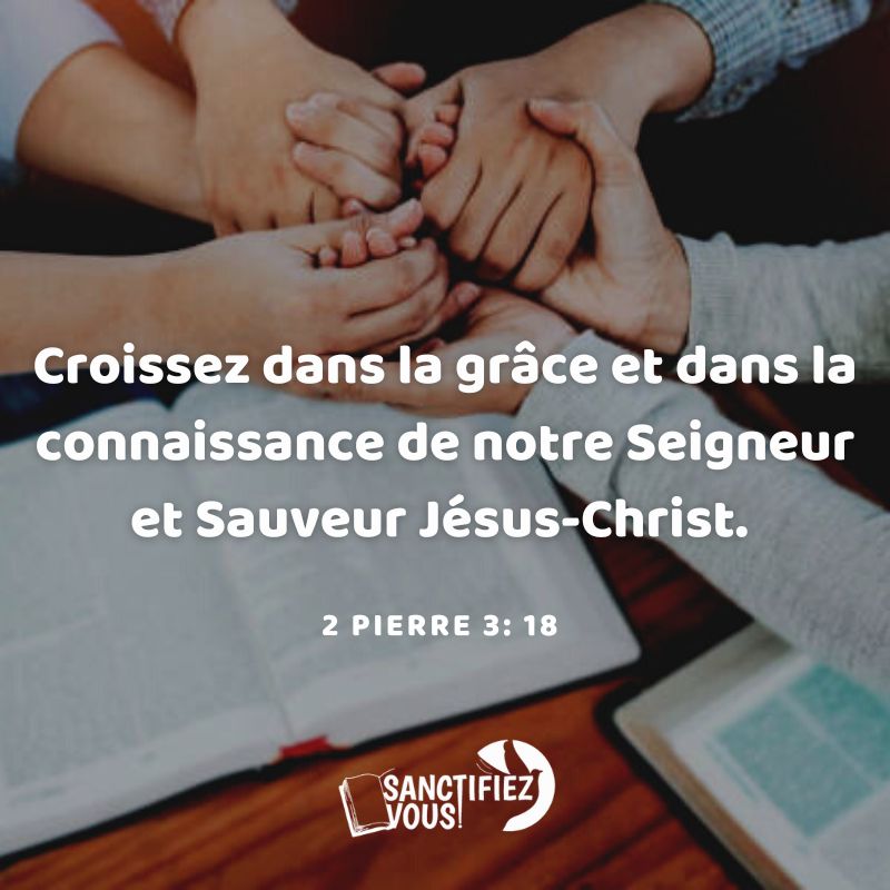 Croissez dans la grâce et dans la connaissance de notre Seigneur et Sauveur Jésus-Christ. 2 Pierre 3:18