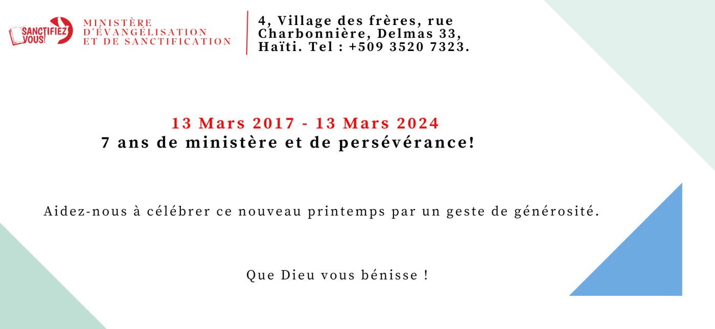 Vous qui désirez supporter Sanctifiez-vous à l’occasion de son 7ème anniversaire, voici les différents moyens qui sont à votre disposition :