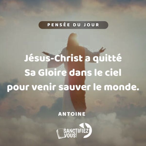 Jésus-Christ a quitté Sa Gloire dans le ciel pour venir sauver le monde. Antoine Panse pou jounen an 🧠Jezi Kri te kite Glwa Li nan syèl la pou L' te vin sove mond lan. Antoine Pour recevoir quotidiennement les messages de SANCTIFIEZ-VOUS, suivez notre chaîne Whatsapp via ce lien : https://whatsapp.com/channel/0029VaDA6tCAO7RHYUrDS428