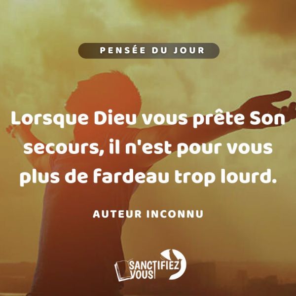 Lorsque Dieu vous prête Son secours, il n'est pour vous plus de fardeau trop lourd. Auteur inconnu Panse pou jounen an 🧠Lè se BonDye ki vin ede w, pa gen okenn fado ki lou pou ou. Otè enkoni Pour recevoir quotidiennement les messages de SANCTIFIEZ-VOUS, suivez notre chaîne Whatsapp via ce lien : https://whatsapp.com/channel/0029VaDA6tCAO7RHYUrDS428