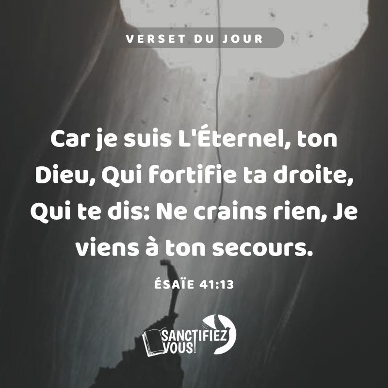 Car Je suis L’Ăternel, ton Dieu, qui fortifie ta droite, qui te dis : Ne crains rien, Je viens Ă ton secours. ĂsaĂŻe 41:13