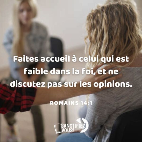 Faites accueil à celui qui est faible dans la foi, et ne discutez pas sur les opinions. Romains 14:1 Bien aimé(e), Dieu veut que tous Ses enfants connaissent, comprennent et pratiquent ce qui est essentiel dans Sa Parole, à savoir : avoir de l'amour pour Lui et pour nos semblables. Ainsi, au lieu de servir... Lire la Suite →
