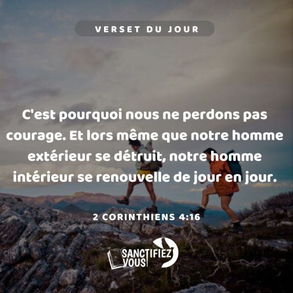C'est pourquoi nous ne perdons pas courage. Et lors même que notre homme extérieur se détruit, notre homme intérieur se renouvelle de jour en jour. 2 Corinthiens 4:16 Vèsè jounen an 📖Se sak fè mwen pa janm dekouraje. Menm si kò m' ap bese chak jou, lespri m' ap vin pi fèm chak jou tou. ... Lire la Suite →
