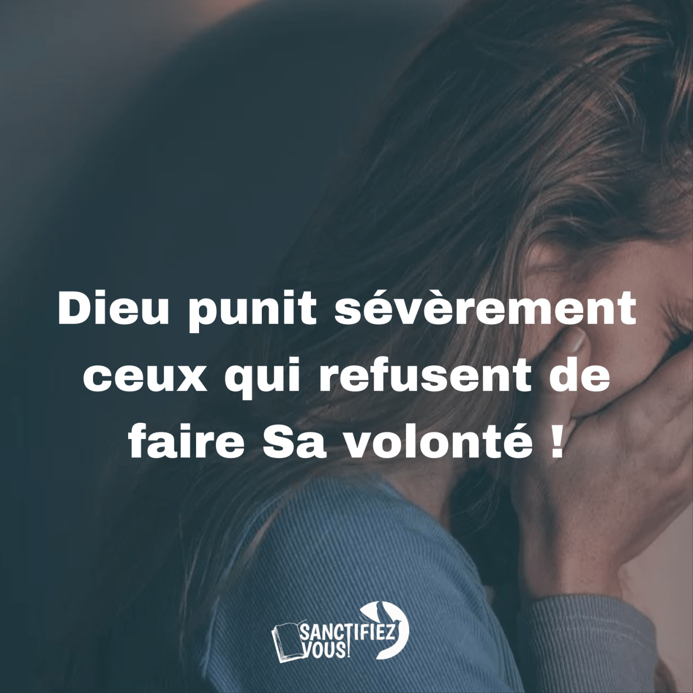 Conseils : Apprenez à obéir en toutes choses à Dieu et de Lui être agréable afin de rester toujours dans Sa volonté et de jouir sa bonté et ses bienfaits. Sinon, Dieu vous punira sévèrement si vous êtes négligeant à ses ordonnances.