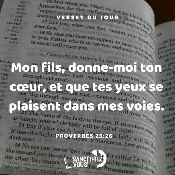 Mon fils, donne-moi ton cœur, et que tes yeux se plaisent dans mes voies. Proverbes 23:26 Vèsè jounen an 📖Pitit mwen, louvri zòrèy ou pou tande sa m'ap di ou. Louvri je ou byen pou ou wè jan m'ap viv. Pwovèb 23:26 Pour recevoir quotidiennement les messages de SANCTIFIEZ-VOUS, suivez notre chaîne Whatsapp via ce... Lire la Suite →