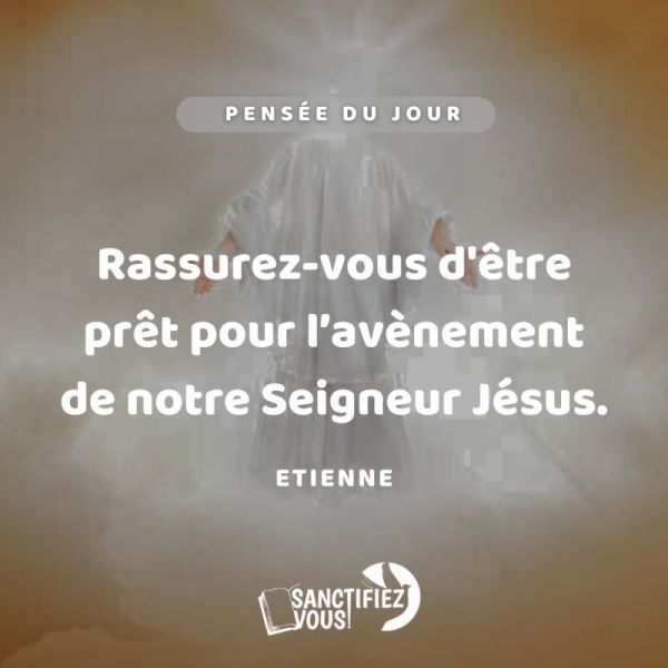 Rassurez-vous d'être prêt pour l’avènement de notre Seigneur Jésus. EtiennePanse pou jounen an 🧠Se pou ou asire w ke ou pare lè gran jou Senyè nou Jezi va rive. EtiennePour recevoir quotidiennement les messages de SANCTIFIEZ-VOUS, suivez notre chaîne Whatsapp via ce lien : https://whatsapp.com/channel/0029VaDA6tCAO7RHYUrDS428