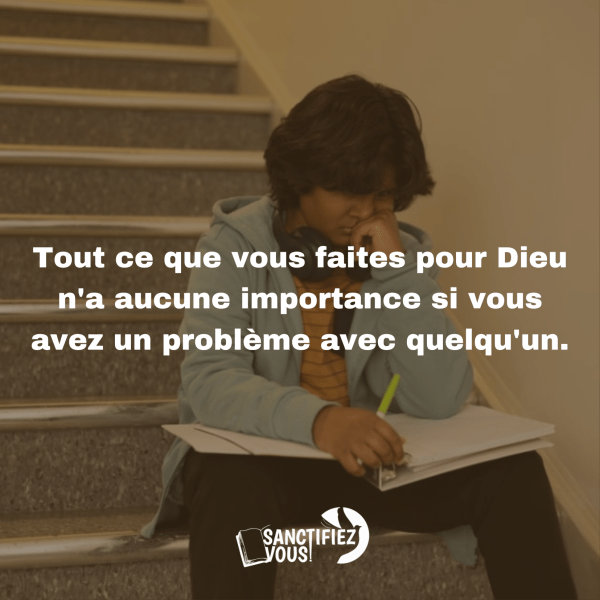 Si une personne a un différend avec une autre, il est inutile qu'elle fasse quelque chose pour Dieu, car son travail qui est comme un don ou une offrande, ne sera pas agréé par Dieu.