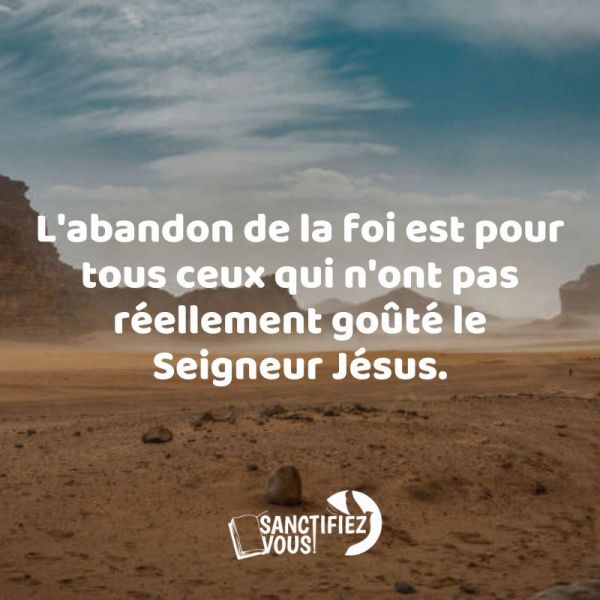Personne ne peut abandonner le Seigneur après L'avoir réellement goûté, car Dieu est bon ! Mais les séductions de ce monde ainsi qu'une mauvaise doctrine peuvent vous empêcher de vous livrer totalement à Dieu pour vivre dans la foi et par la foi.