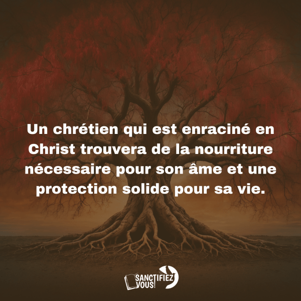 Un chrétien qui est enraciné en Christ trouvera de la nourriture nécessaire pour son âme et un fondement solide pour la protection de sa vie. S'enraciner en Christ aide à avoir une maturité bien construite en Lui et nous protège contre les ruses du diable...
