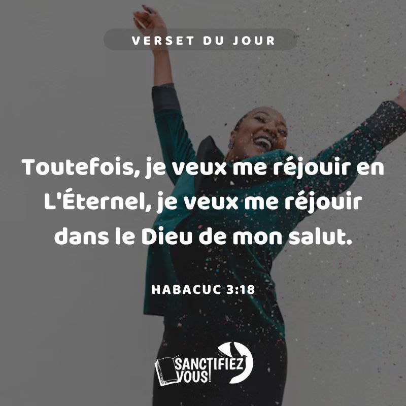 Toutefois, je veux me rĂ©jouir en L’Ăternel, je veux me rĂ©jouir dans le Dieu de mon salut. Habacuc 3:18