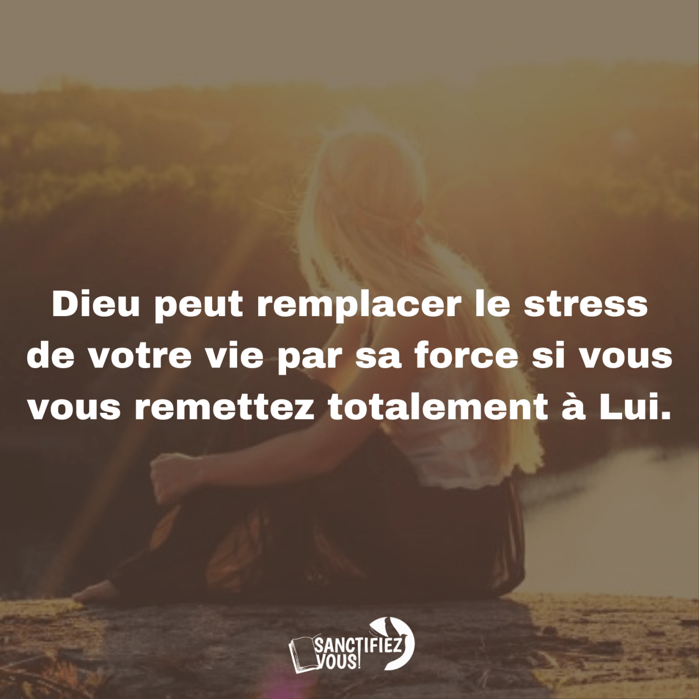 Conseils : Demandez à Dieu de vous corriger doucement, de vous guider et de vous rediriger au cœur de votre stress, puis demandez-Lui de remplacer votre stress par sa force afin de pouvoir vivre heureux, sans stress.
