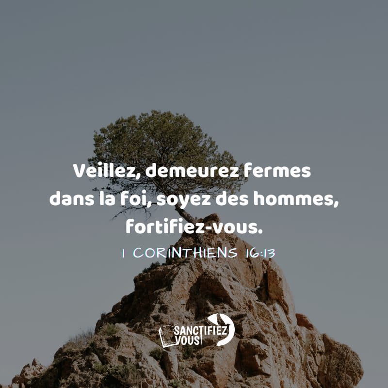 Veillez, demeurez fermes dans la foi, soyez des hommes, fortifiez-vous. 1 Corinthiens 16:13