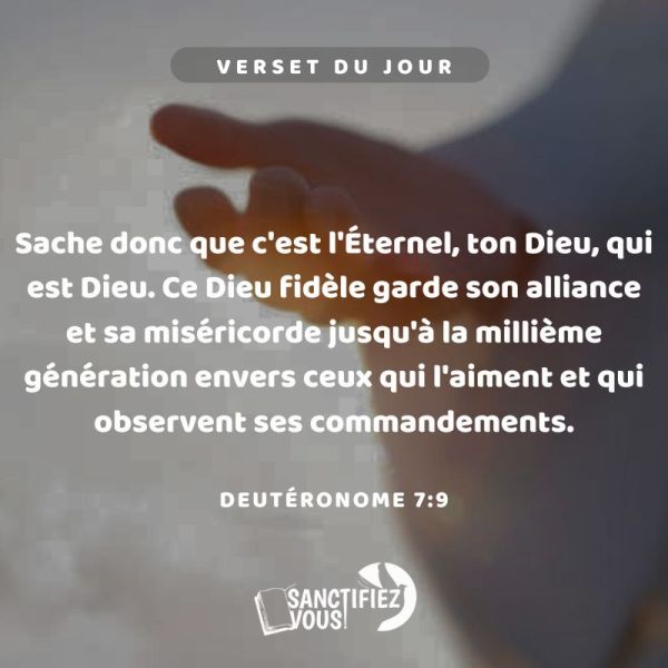 Sache donc que c'est L'Éternel, ton Dieu, qui est Dieu. Ce Dieu fidèle garde son alliance et sa miséricorde jusqu'à la millième génération envers ceux qui l'aiment et qui observent ses commandements. Deutéronome 7:9 Vèsè jounen an 📖Se pou nou rekonèt Senyè a, BonDye nou an, se sèl BonDye ki genyen, sèl Bondye k ap... Lire la Suite →