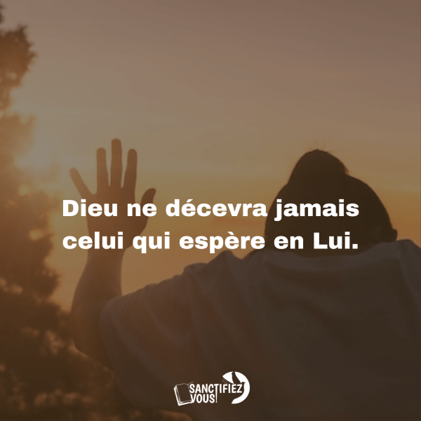 Ne passez jamais une journée sans Christ, sans espérance et sans Dieu. Croyez que même si un jour votre corps se détruirait, que les choses de la terre disparaîtraient, Dieu vous assure un avenir éternel dont personne ne pourra vous priver !