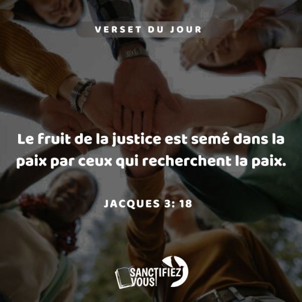 Le fruit de la justice est semé dans la paix par ceux qui recherchent la paix. Jacques 3:18Vèsè jounen an 📖Moun k ap chache pou lèzòm viv byen youn ak lòt, y ap travay ak kè poze pou yo ka rekòlte yon lavi ki dwat devan BonDye. Jak 3:18Pour recevoir quotidiennement les messages de SANCTIFIEZ-VOUS,... Lire la Suite →