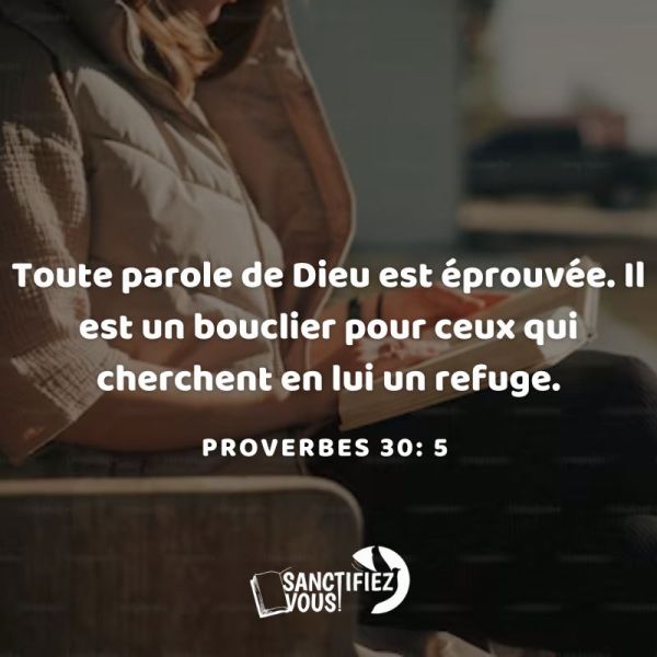 Toute parole de Dieu est éprouvée. Il est un bouclier pour ceux qui cherchent en Lui un refuge. Proverbes 30:5Bien aimé(e), lorsque vous vous sentez en détresse, sachez que vous trouverez un refuge dans la Parole de Dieu, car elle est un bouclier pour tous ceux qui se confient en Lui.Amen ?Bonjour et bon dimanche... Lire la Suite →