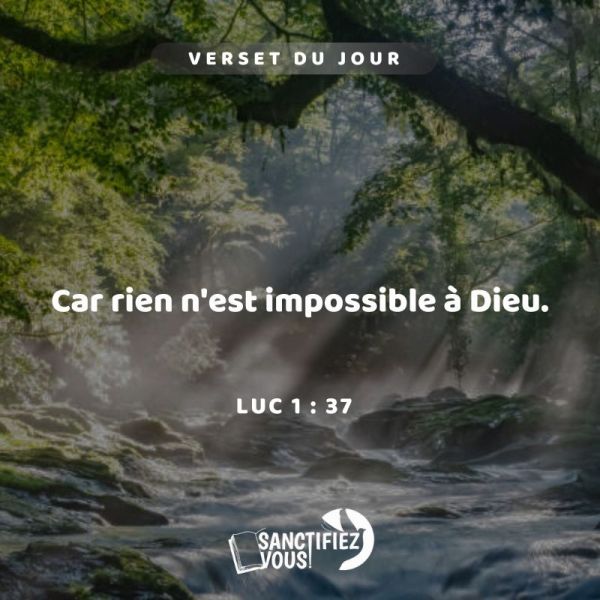 Car rien n'est impossible à Dieu. Luc 1:37Vèsè jounen an 📖Tou sa rive paske pa gen anyen BonDye pa ka fè. Lik 1:37Pour recevoir quotidiennement les messages de SANCTIFIEZ-VOUS, suivez notre chaîne Whatsapp via ce lien : https://whatsapp.com/channel/0029VaDA6tCAO7RHYUrDS428