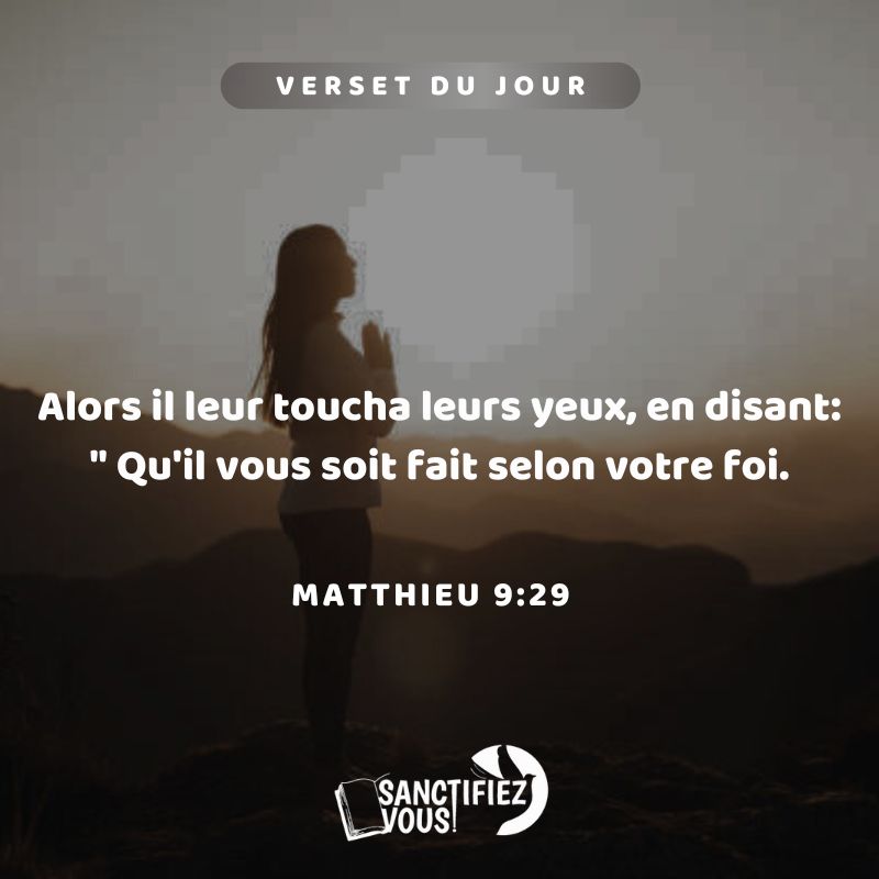 Alors il leur toucha leurs yeux, en disant : « Qu’il vous soit fait selon votre foi. » Matthieu 9:29