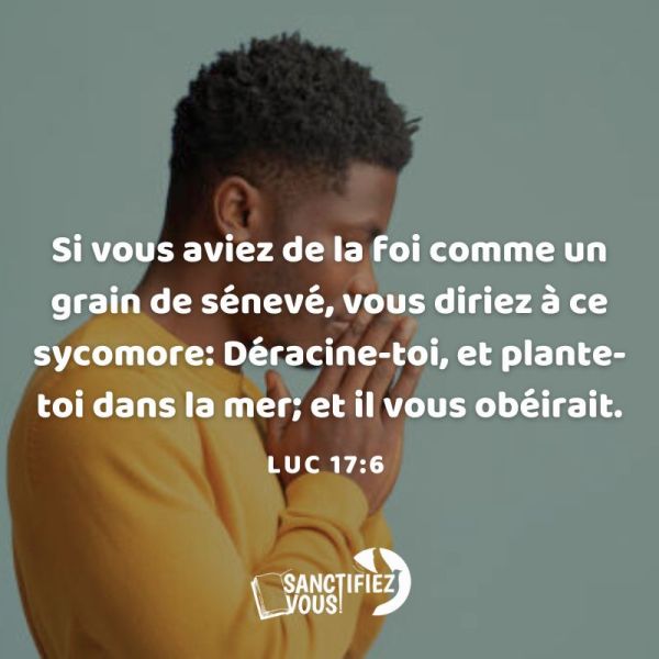 Si vous aviez de la foi comme un grain de sénevé, vous diriez à ce sycomore: Déracine-toi, et plante-toi dans la mer; et il vous obéirait. Luc 17:6Mon ami(e), Dieu veut que vous ayez un minimum de foi en Lui, car même avec une petite foi vous pouvez faire des miracles, voire si vous avez... Lire la Suite →
