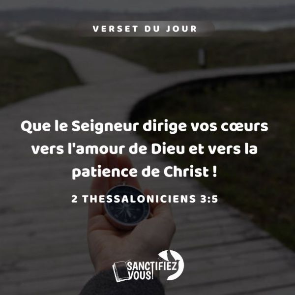 Que le Seigneur dirige vos cœurs vers l'amour de Dieu et vers la patience de Christ ! 2 Thessaloniciens 3:5Vèsè jounen an 📖Mwen mande Senyè a pou l dirije kè nou pou nou ka renmen BonDye, pou nou ka gen pasyans tankou Kris la. 2 Tesalonik 3:5Pour recevoir quotidiennement les messages de SANCTIFIEZ-VOUS, suivez notre... Lire la Suite →