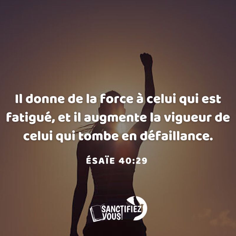Il donne de la force à celui qui est fatigué, et Il augmente la vigueur de celui qui tombe en défaillance. Ésaïe 40:29