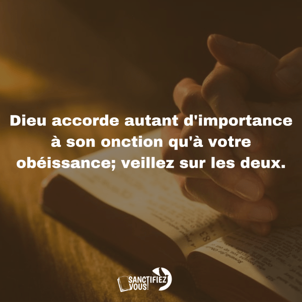 L'onction de Dieu est un privilège accordé à ceux qu'Il choisit pour accomplir Ses desseins. Cependant, elle n'a pas une portée éternelle. Un homme ou une femme peut perdre l’onction divine si l'obéissance et l'humilité ne sont pas maintenues.