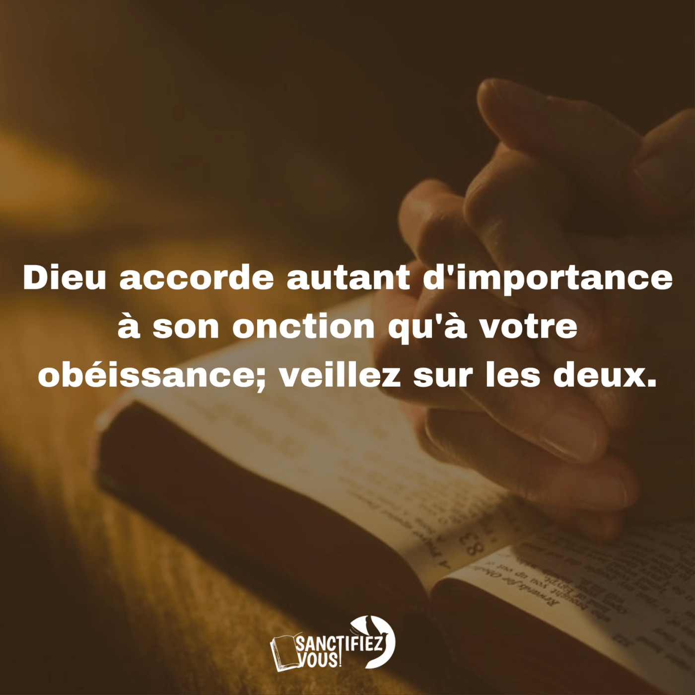 À retenir : Lorsque Dieu donne l’onction c’est pour l’accomplissement de la mission qu’il nous confie. D’aucune manière, elle ne justifie la désobéissance.