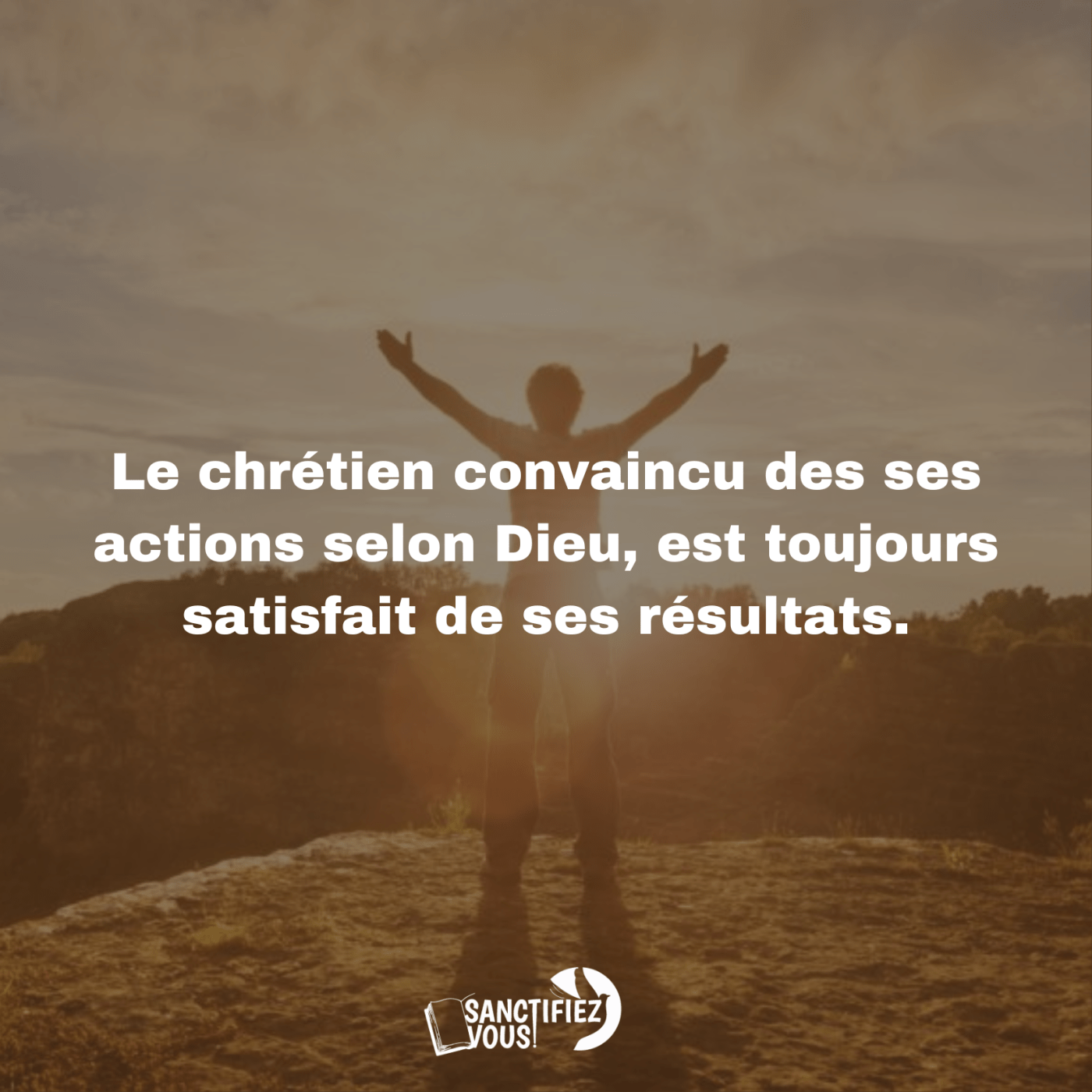 Sous aucune manière, aucun chrétien ne doit agir sous pression, par conformisme ou par crainte des hommes, mais selon une conviction personnelle, éclairée par la Parole de Dieu et dirigée par le Saint-Esprit. Un chrétien convaincu est un chrétien stable, capable de témoigner de sa foi avec assurance et de prendre des décisions alignées sur la volonté de Dieu. Sa vie reflète la puissance de sa foi parce qu’il est persuadé de la vérité de l’Évangile. Une foi hésitante ou influencée par le doute peut nous éloigner de la volonté divine.