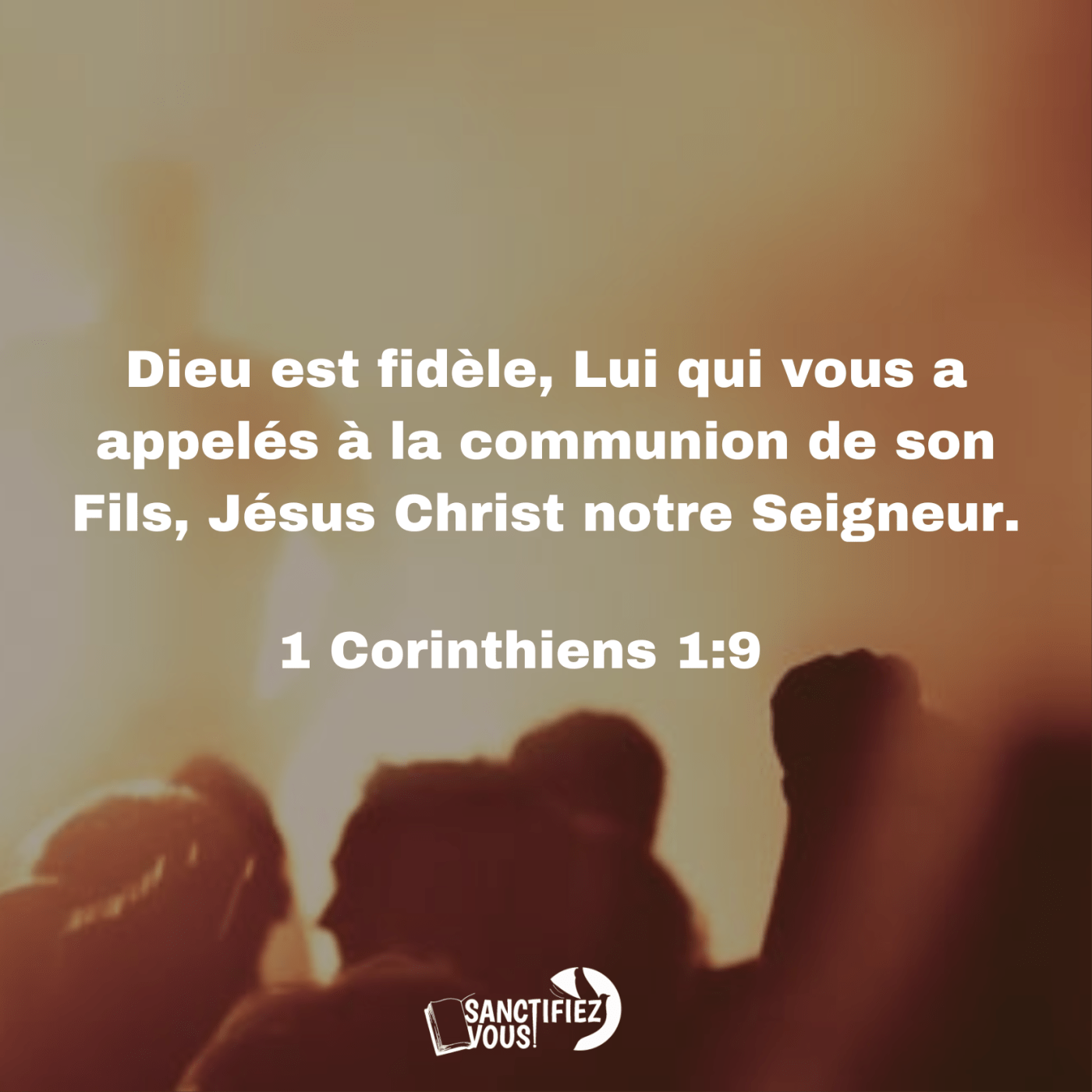 Dieu est fidèle, lui qui vous a appelés à la communion de son Fils, Jésus Christ notre Seigneur. 1 Corinthiens 1:9