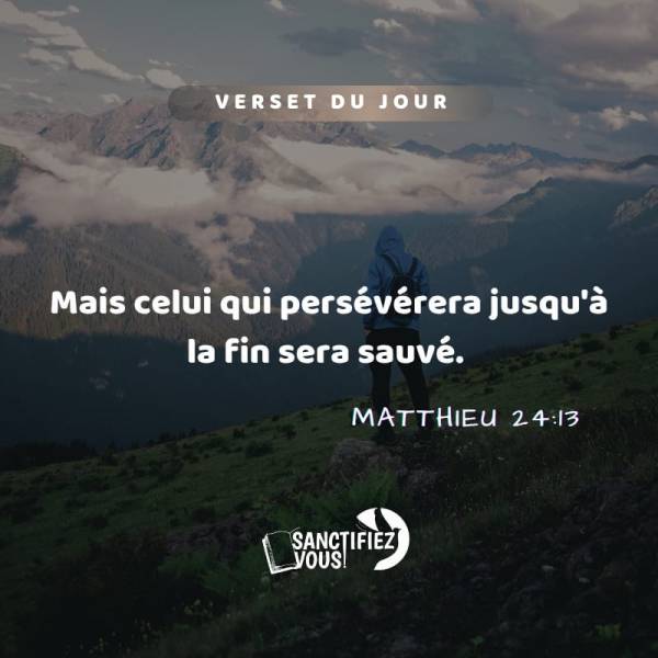 Mais celui qui persévérera jusqu'à la fin sera sauvé. Matthieu 24:13Vèsè jounen an 📖Men, moun ki va kenbe fèm jouk sa kaba, se li ki va delivre. Matye 24:13Pour recevoir quotidiennement les messages de SANCTIFIEZ-VOUS, suivez notre chaîne Whatsapp via ce lien : https://whatsapp.com/channel/0029VaDA6tCAO7RHYUrDS428