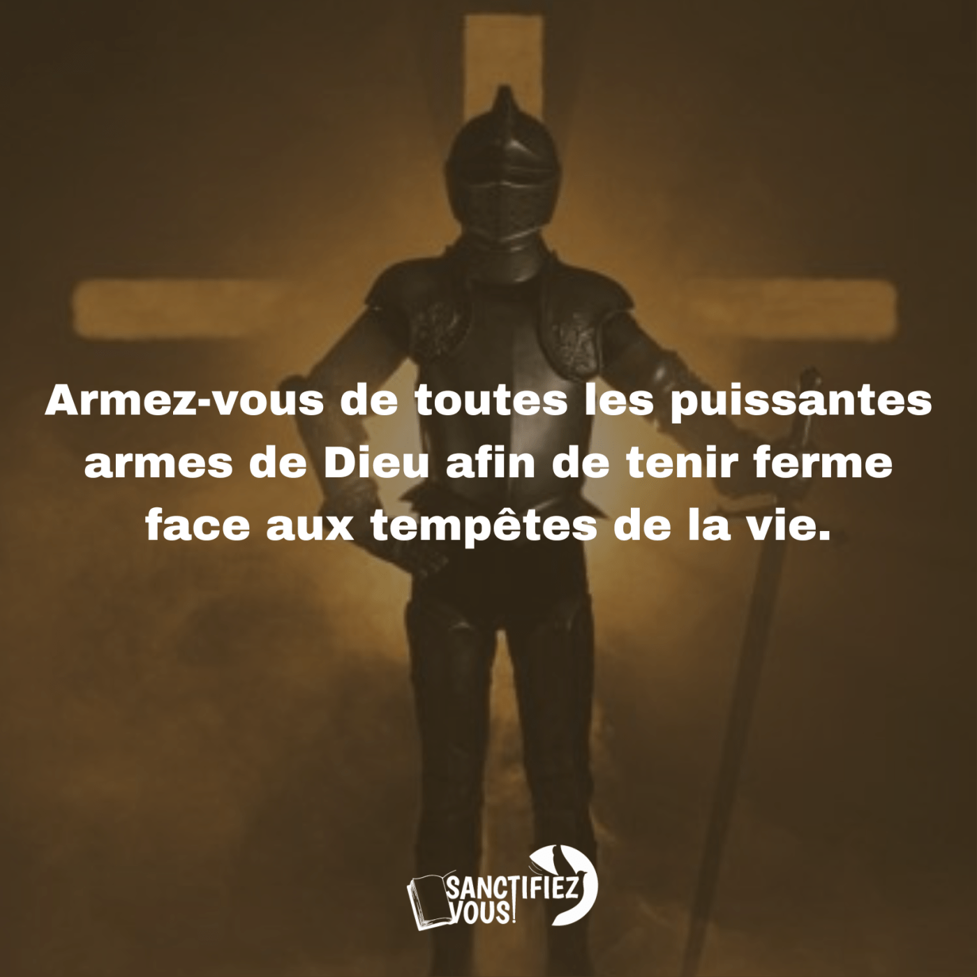 Verset : Éphésiens 6:13 – C’est pourquoi, prenez toutes les armes de Dieu, afin de pouvoir résister dans le mauvais jour, et tenir ferme après avoir tout surmonté.