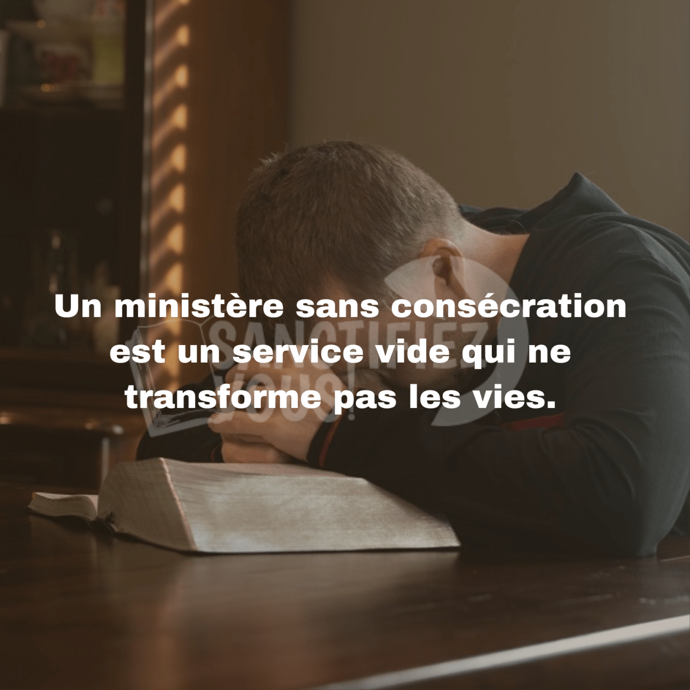 Un ministère peut exister sans consécration, mais il sera vide de puissance spirituelle. Il pourra attirer les regards, mais pas changer les vies. La consécration, elle, fait de nous des instruments que Dieu peut vraiment utiliser, parce qu’ils Lui appartiennent totalement.