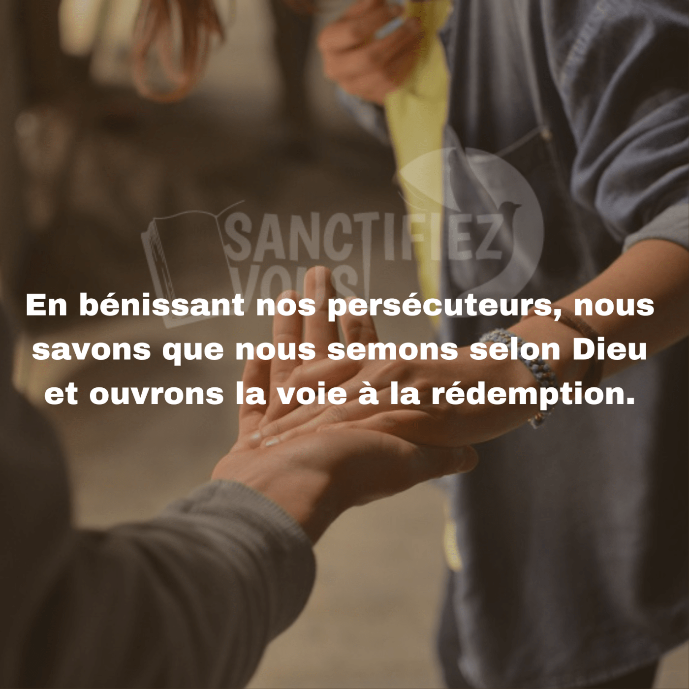 La persécution n’a jamais été une chose facile à accepter, mais elle peut être surmontée par la parole. Bénir, malgré tout, c’est déclarer ou proclamer sur la vie de la personne l’idéal que Dieu a pour chaque être humain, à savoir une vie empreinte d’amour et de miséricorde. Bénir nos persécuteurs, c’est semer une graine de lumière dans les ténèbres. Et parfois, cette bénédiction devient le premier pas vers la transformation de celui ou celle qui nous a blessé.