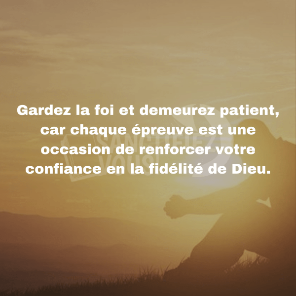 Dans un monde pressé où tout doit aller vite, Dieu nous rappelle que sa promesse n’est jamais en retard. Celui qui est patient garde la foi, ne se laisse pas ébranler par les circonstances et se prépare à la rencontre du Seigneur.