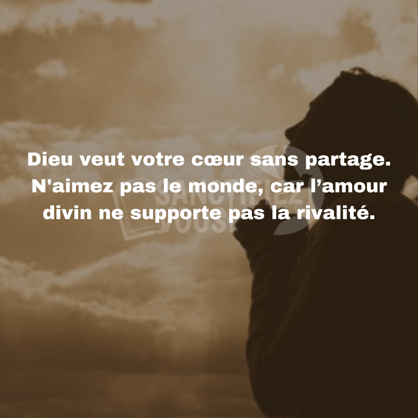 À retenir : On ne peut pas aimer Dieu et le monde en même temps. L’amour du monde remplit le cœur d’orgueil et vide l’âme de la présence de Dieu. Mais aimer Dieu, c’est se libérer des chaînes du monde.