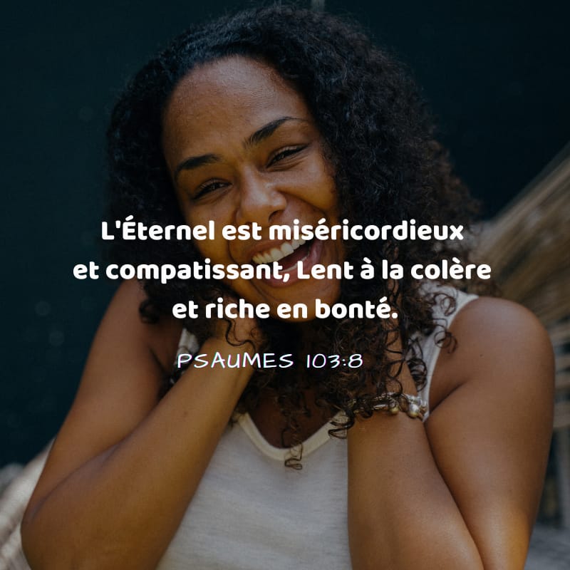 L’Éternel est miséricordieux et compatissant, lent à la colère et riche en bonté. Psaumes 103:8
