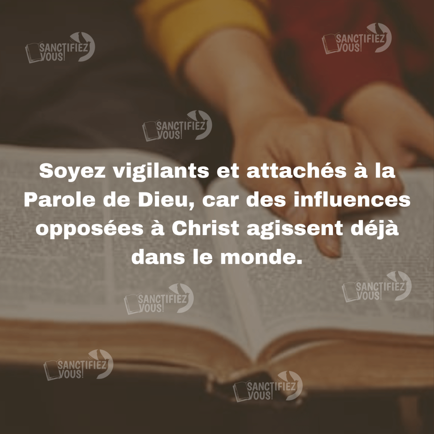 Conseils : Exposez régulièrement votre cœur et votre pensée à la Parole de Dieu afin de développer le discernement, et écartez toute influence qui affaiblit votre vision de Jésus ou altère sa vérité.
