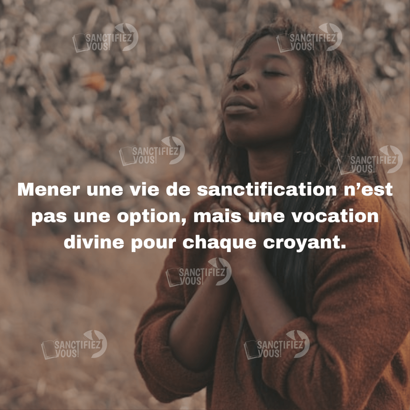 Cet appel à la sainteté concerne tous les domaines de notre vie : notre comportement, nos relations, nos choix et même nos motivations intérieures. Dieu désire que notre manière de vivre témoigne clairement de notre appartenance à Christ. La sanctification est un processus continu par lequel le Saint-Esprit nous transforme progressivement, nous aidant à abandonner ce qui déplaît à Dieu pour adopter une vie qui Lui est agréable.
