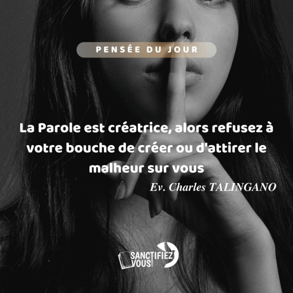 La Parole est créatrice, alors refusez à votre bouche de créer ou d'attirer le malheur sur vous. Ev. Charles TALINGANO Panse pou jounen anPawòl gen pouvwa pou kreye, pou rezon sa, pa kite pawòl kap soti nan bouch ou kreye oubyen atire tout sa k pa bon sou vi w. Ev. Charles TALINGANO
